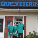 Clémence Deniau, Inès Dedion et Valentin Namri à la clinique vétérinaire du Chateau,