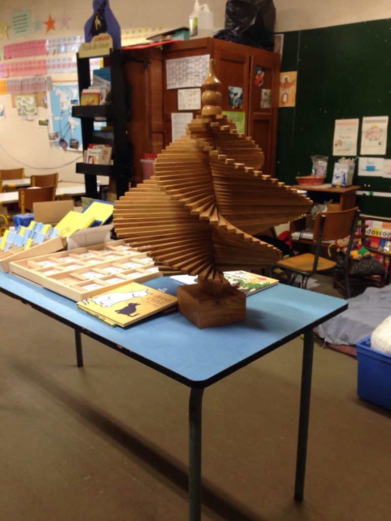 Sapin de Noël de la classe de CP fabriquée par un papa de grande section