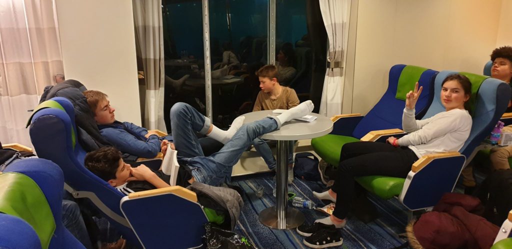 Bonjour à tous ! Malgré quelques malades pendant la traversée un peu remuante, nous sommes bien arrivés à Roscoff. Quand nous aurons passé les formalités d’usage, nous pourrons prendre la route vers Romorantin pour la dernière étape du séjour.