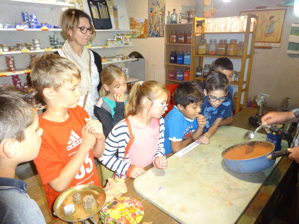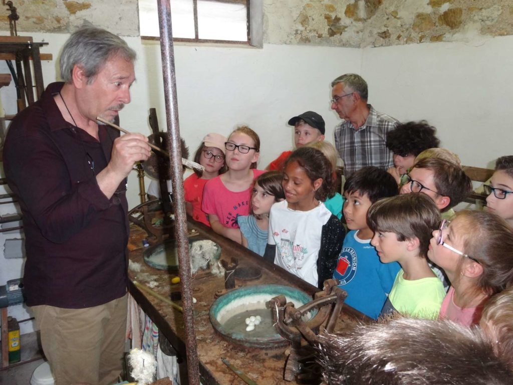 La classe CE2 de Laurence Gillet a découvert la technique de la tempera au musée de l’ocre et les étapes qu’un fil de soie doit traverser pour arriver à l’état d’étoffe à Saint Georges sur la Prée.