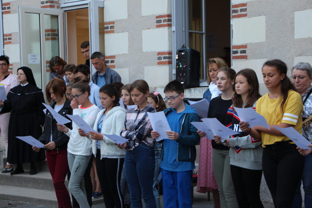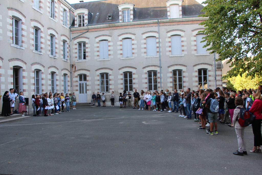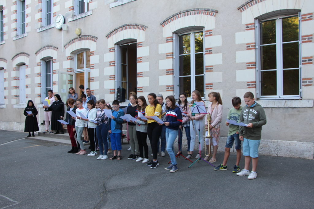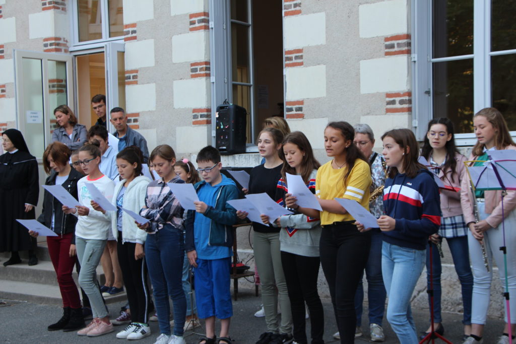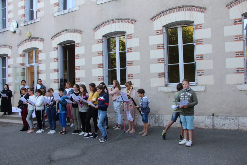 Ce matin à 9h, la rentrée des 6ièmes Amboise, Chambord et Valençay a eu lieu en musique avec les choristes et musiciens de Notre Dame.