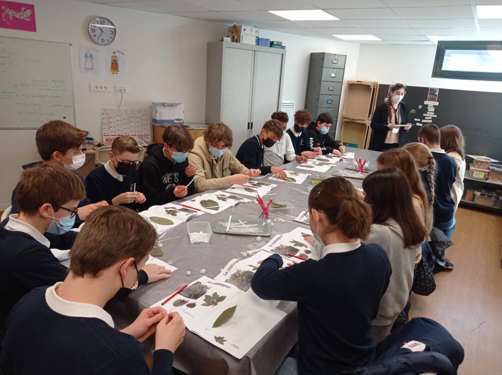 Un groupe de 4e confectionne un herbier au musée de Sologne dans le cadre de leur E.P.I. sur les cabinets de curiosités