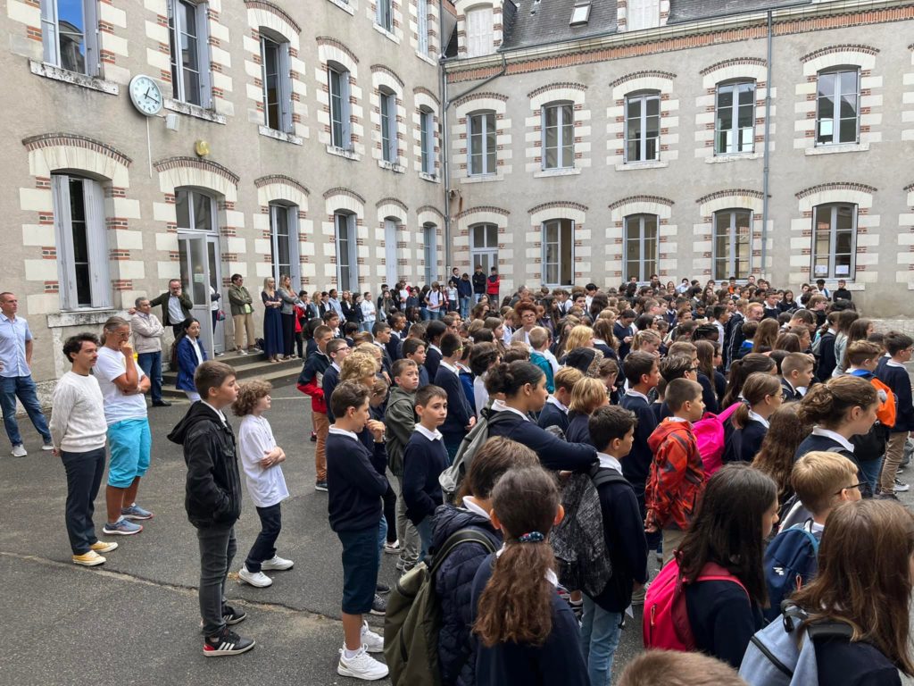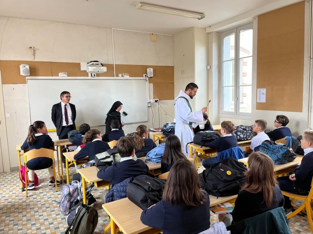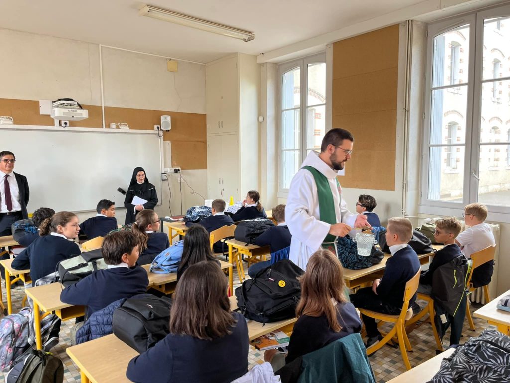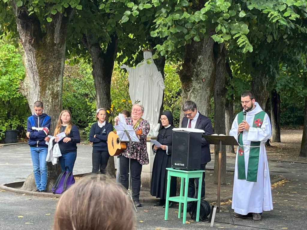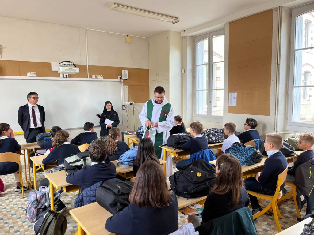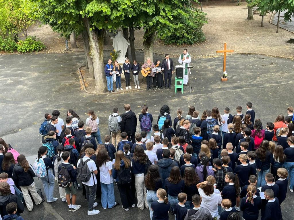 Le vendredi 2 septembre, a eu lieu une célébration de rentrée dans la cour puis le père Thibault Ries a béni les cartables des 6emes dans les classes.